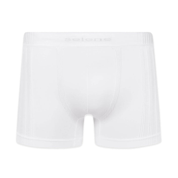 Cueca Boxer Selene Linie Poliamida Sem Costura Branca. Cueca Boxer com cós em listras verticais discretas pra deixar a cueca ainda mais elegante.