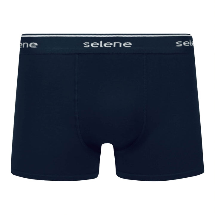 Cueca Boxer Selene Topline Algodão Azul Marinho. Cueca Boxer lisa com elástico de 35mm, linha superior e escrito Selene em toda a extensão da cueca.