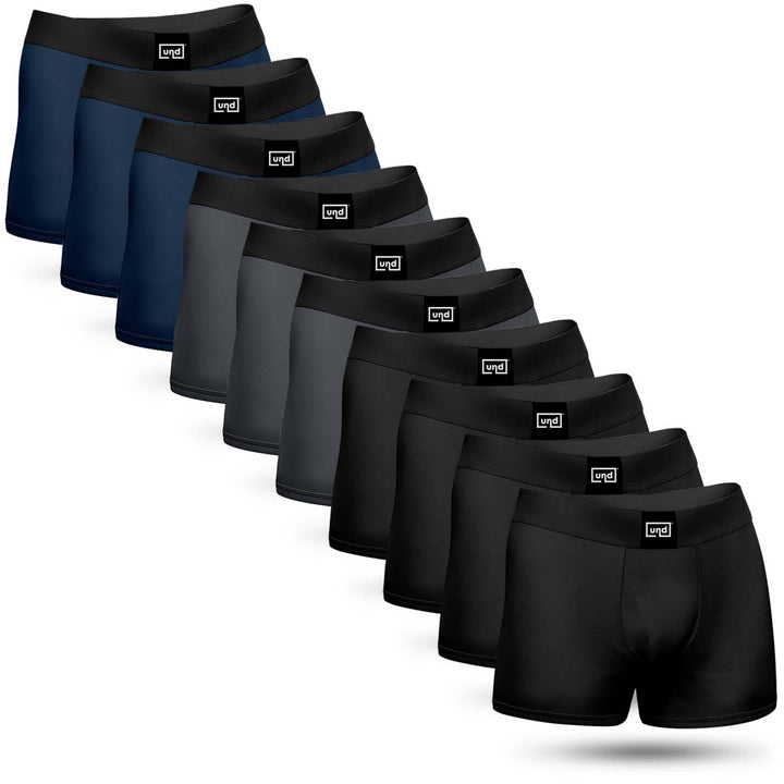 Kit 10 Cuecas Boxer Microfibra Classic UND Preta/Azul/Chumbo
