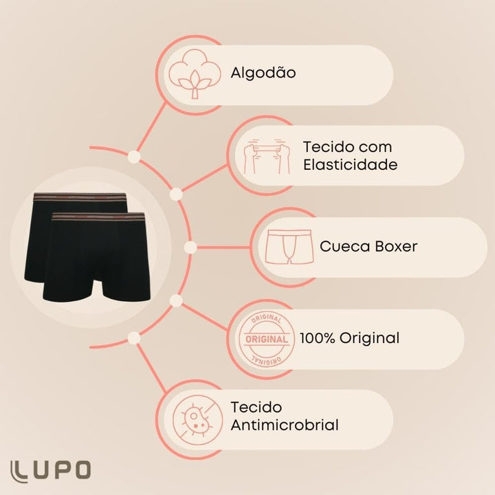 Kit 10 Cuecas Lupo AM Boxer Preto