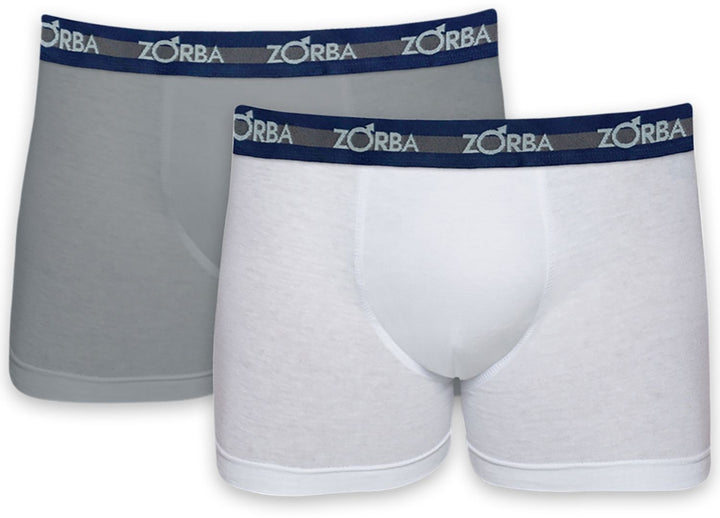 O Kit 2 Cuecas Zorba Boxer Max 100% Algodão Branco/GrafiteN é ideal para homens discretos que prezam pelo conforto da cueca 100% algodão. A linha Zorba Boxer Max é produzida em 100% algodão, evitando alergias e extremo conforto. O kit Zorba Max possui elástico de 3cm com o logotipo Zorba bordado de forma discreta. Ótimo custo benefício na compra do kit.
