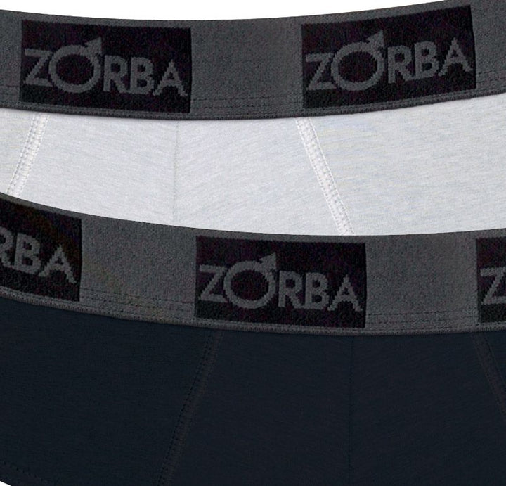 O Kit 2 Cuecas Zorba Slip Plus New Algodão Branca/Preta é ideal para o dia-a-dia do homem moderno. A linha Zorba Slip Plus é produzida em algodão com elastano, proporcionando conforto para todos os benefícios. Além disso, o kit cueca Slip Plus possui elástico aparente de 3cm com o logotipo Zorba bordado em destaque. Ótimo custo benefício na compra do kit.