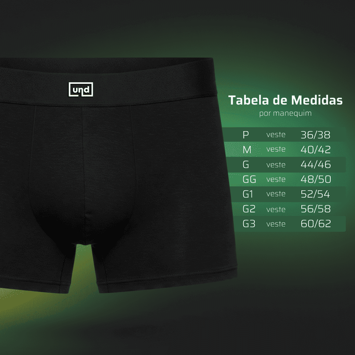 Ninguém merece cueca que fica apertando ou larga demais. Por isso, a gente cobre do P ao G3 – porque conforto não tem tamanho.